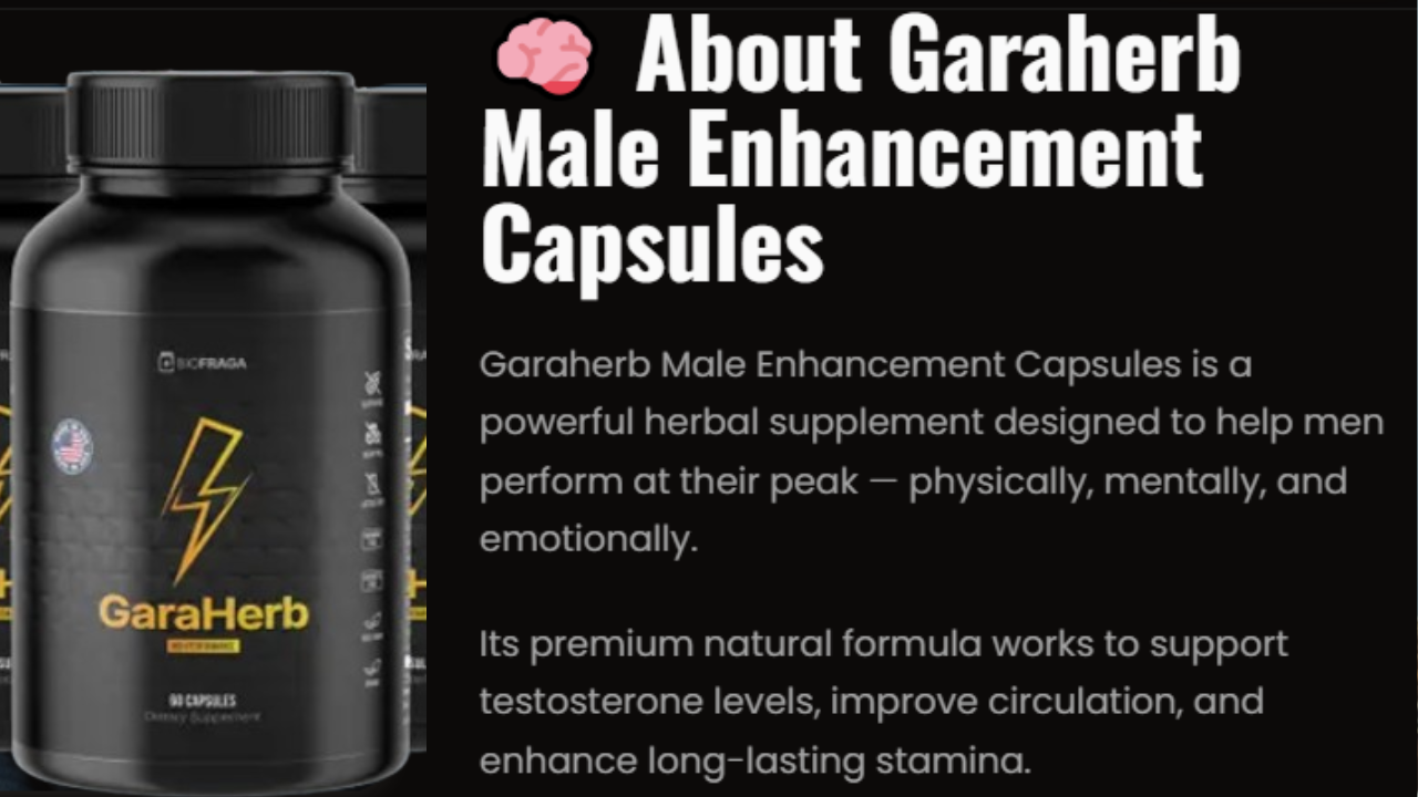 Garaherb is a natural supplement for men. It comes as capsules and is designed to support: